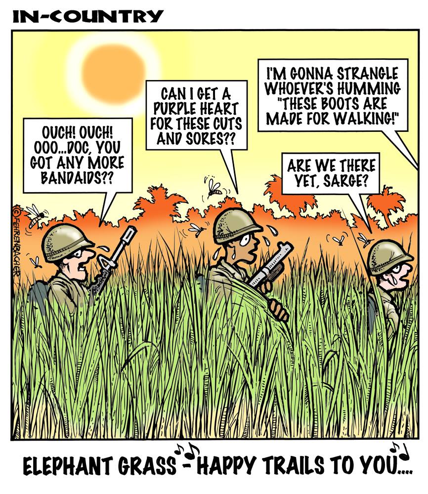 Phil enlisted in the Army in 1965 where he served for years in Vietnam.  He became a graphic designer and has worked for the state of Oregon for 26 years.  He retired in 2003 and started the Cartoon "In-Country".  The cartoons reflect his experiences during his tour of duty in South Vietnam.